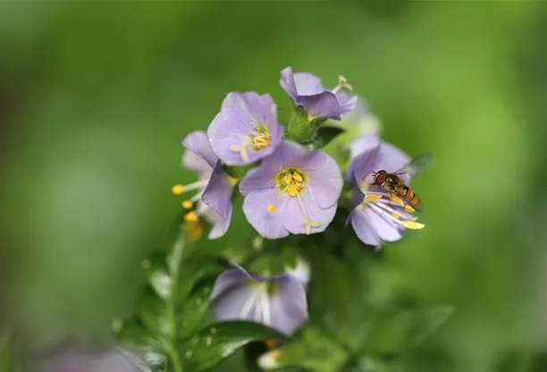 Das Johanniskraut – Hypericum perforatum – findet man in Trockenwiesen und an sonnigen Waldrändern. Diese Wildstaude ist auch als Heilmittel bekannt und macht sich besonders gut in Natur- oder Apothekergärten. Es erreicht eine Höhe von 45 Zentimetern und blüht von Mai bis Juli, wobei seine Blüten eine Vielzahl von Insekten magisch anziehen. Johanniskraut macht sich am besten an sonnigen Standorten.6. Himmelsleiter – Polemonium caeruleum