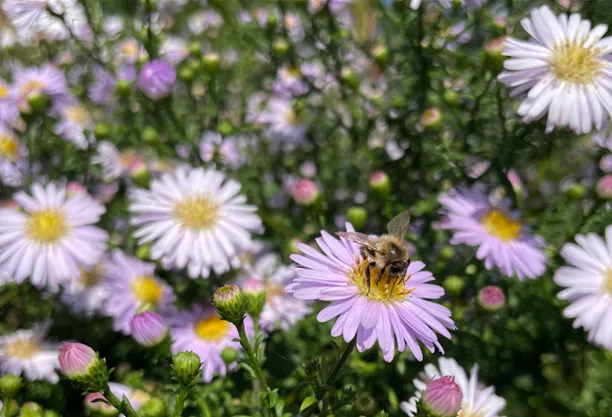 Astern gehören zu den Korbblütlern und haben wie Lilien einen Pollen- und Nektarwert von 3, was sie zu prädestinierten Trachtpflanzen für Honigbienen und auch für viele spezialsierte Wildbienenarten macht. Besonders empfehlenswert sind die Raublattaster, die Wildaster, die Glattblattaster oder auch die Bergaster, die besonders resistent gegen Mehltau ist. Sie stehen z. B. auf dem Speiseplan Der Gewöhnlichen Löcherbiene, der Einhöckerigen Mauerbiene oder verschiedener Sand- und Zottelbienen. Hinzu kommt, dass es sich um eine Schmetterlingspflanze handelt. Spät im Jahr fliegende Schmetterlinge wie das Tagpfauenauge, der Admiral oder der Kleine Fuchs lieben sie.Astern gibt es in sehr vielen Größen und Farben. Sie werden von wenigen Zentimetern bis zu 1,2 Metern hoch und sind in Weiß-, Rosa- und Blautönen erhältlich. Der Standort für Astern sollte nicht zu nährstoffarm sein und die meisten Asternarten lieben einen sonnigen Standort.