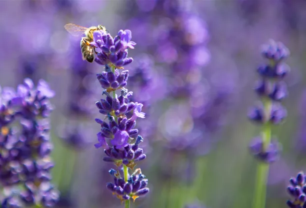 Echter Lavendel hat einen Nektarwert von 4 und einen Pollenwert von 2. Der hohe Nektarwert macht ihn zu einer wichtigen Nahrungsquelle, vor allem für Honigbienen und Hummeln. Auch die Schuppen-Pelzbiene konnte bereits am Lavendel beobachtet werden. Zudem steht Lavendel bei Schmetterlingen wie dem großen Kohlweißling oder dem rotbraunen Ochsenauge hoch im Kurs.Lavendel erfreut nicht nur das Gärtnerherz mit seinen blauvioletten Blüten, sondern erfüllt die Luft mit seinem himmlischen Duft. Echter Lavendel wird 50 bis 60 Zentimeter hoch und blüht von Juli bis August. Dank seiner immergrünen Blätter ist Lavendel aber auch das ganze Jahr über eine hübsche Ergänzung im Garten. Lavendel liebt einen sonnigen Standort und einen kiesigen oder sandigen, gut durchlässigen Boden.