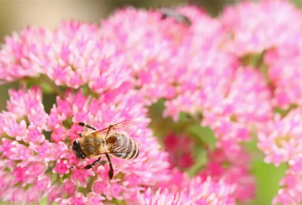 Sedum ist besonders robust, pflegeleicht und trockenheitsverträglich. Es ist eine herrliche mehrjährige Bienenweide mit Nektarwert 3 und Pollenwert 2, die auch von Spätsommerfaltern wie dem Tagpfauenauge oder dem Kleinen Fuchs sehr geschätzt wird. Im Winter zieht es sich vollständig in den Boden zurück, um im Frühjahr wieder neu auszutreiben.Sedum bevorzugt einen sonnigen Standort und der Boden sollte nicht zu feucht oder zu nährstoffreich sein, da es Wasser in seinen dicken, fleischigen Blättern speichert und ein Überangebot nicht verträgt. Die Blüten sind weiß, rosa oder rot und erscheinen zwischen August und Oktober. Es gibt unzählige Sorten, die zwischen 30 und 70 Zentimeter hoch werden.