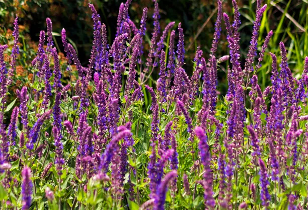 - Steppen-Salbei Salvia nemorosa, Höhe 40 - 50 cm, sehr schöner Lippenblütler mit kräftigen violetten Blütenrispen, Blüte: Juni - September