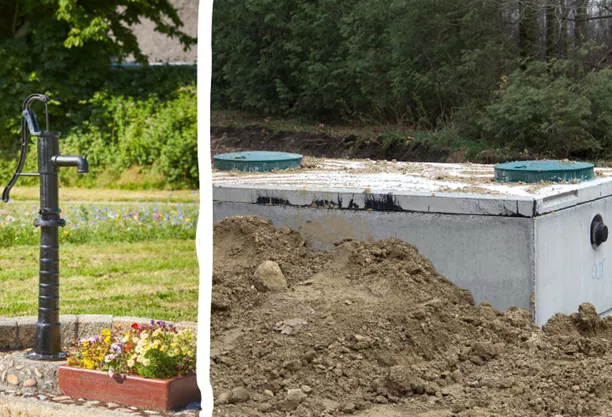 Zisternen sind immer direkt an ein Fallrohr angeschlossen, geschützt durch einen Filter, und haben einen eigenen Überlauf, der überschüssiges Wasser in die Kanalisation leitet. Die Wasserentnahme erfolgt über eine Tauchpumpe, und die Zisterne ist in der Regel so groß, dass sie zur Reinigung betreten werden kann.