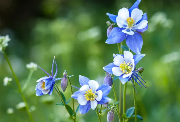 Blütenfarbe: blau, blau-weiß, blauviolett, gelb, rot und weiß