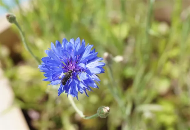 Blütenvorliebe: Sie lieben Kardengewächse, Windengewächse und Korbblütler. Beispielweise Kornblume, Flockenblume, Wegwarte, Schmuckkörbchen,