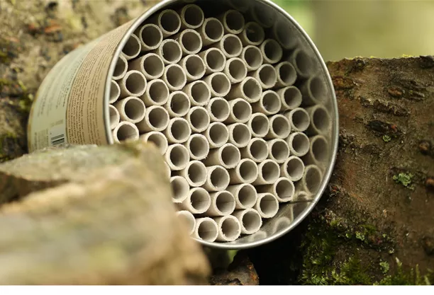 Als Alternative zu hohlen Naturstängeln können übrigens auch Pappröhrchen, wie z. B. Papierstrohhalme verwendet werden. Ein gutes Beispiel dafür ist das Wildbienenhaus von Neudorff, welches wir bei uns im Handel führen. Es hat in Tests eine hervorragende Besiedlungsquote. Noch wichtiger als bei anderen Nisthilfen ist bei den Pappröhrchen ein geschützter Standort für das Wildbienenhaus, sodass sie bei Regen nicht aufweichen.Coole Alternativen: Welche Stängel eignen sich noch?