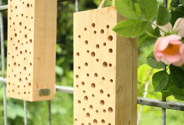 Tipp: Beliebt sind Kästen oder Häuschen, die mit unterschiedlichen Materialien bestückt werden. Ein Häuschen mit leichtem Dachüberstand ist von Vorteil, damit die Nist-Elemente vor der Witterung geschützt sind.
