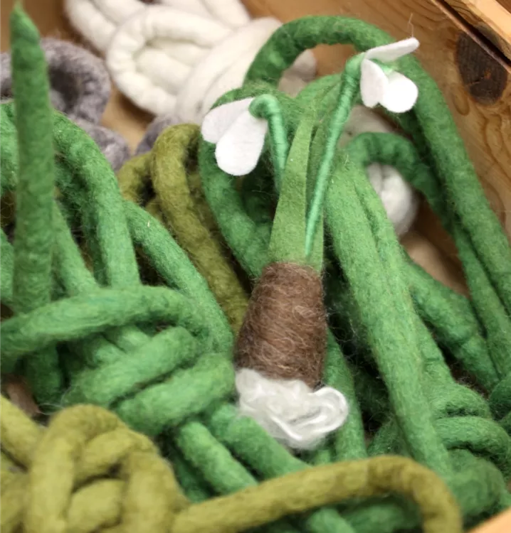 Der Workshop findet im gemütlichen Ambiente unseres GartenHauses statt. In entspannter Runde genießt du leckere Getränke und kleine Köstlichkeiten, während unter deinen Händen einzigartige Werke aus Wolle entstehen.